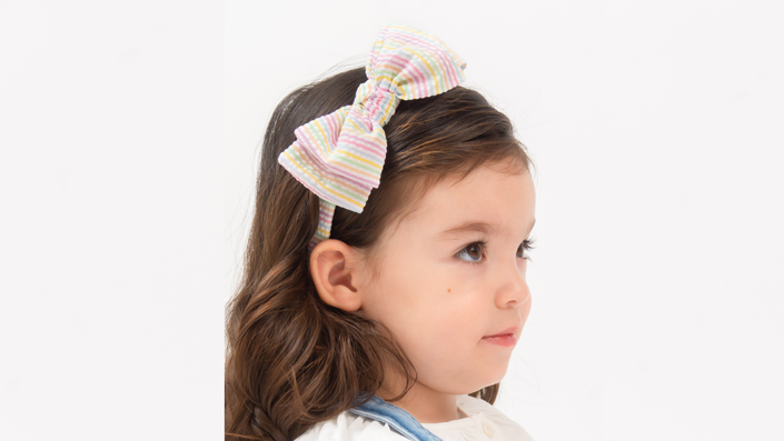 It can be worn from 1.5 year olds until 8 year olds. They can wear it on the side, on a ponytail, in a half-ponytail. Anyway they wear it, it looks beautiful.